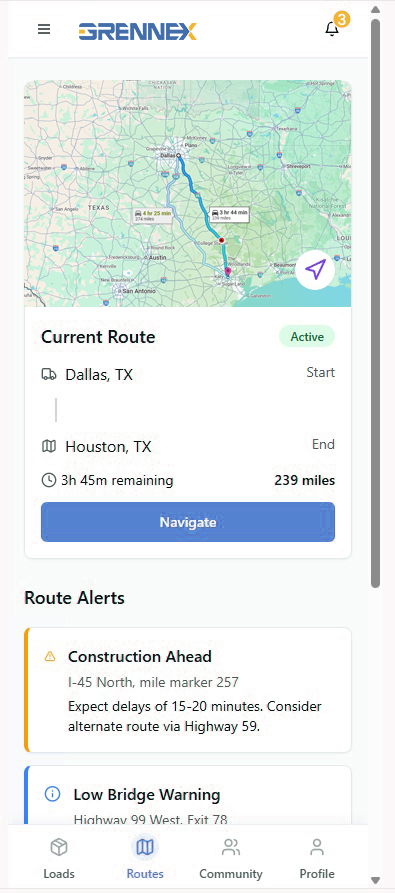 GRENNEX TMS Track & Trace feature allows Real-Time Tracking of the Loads.